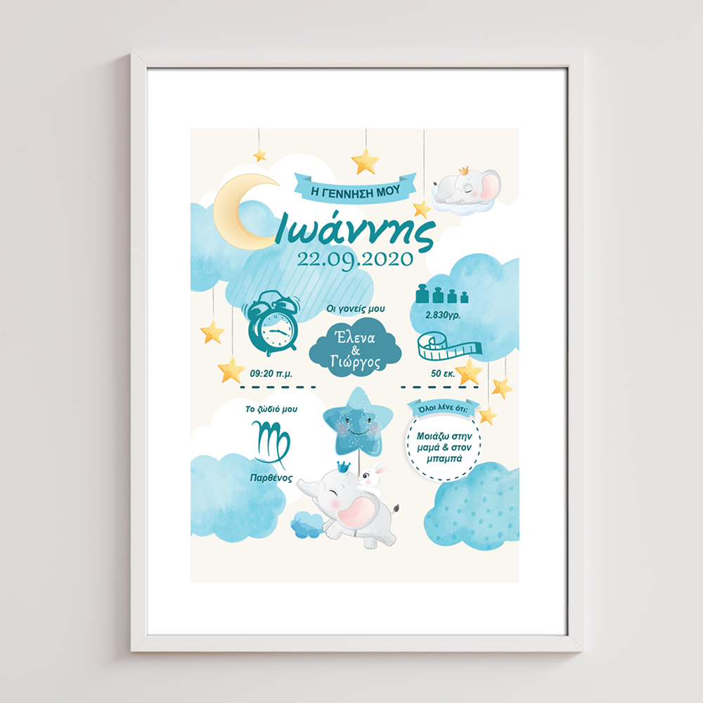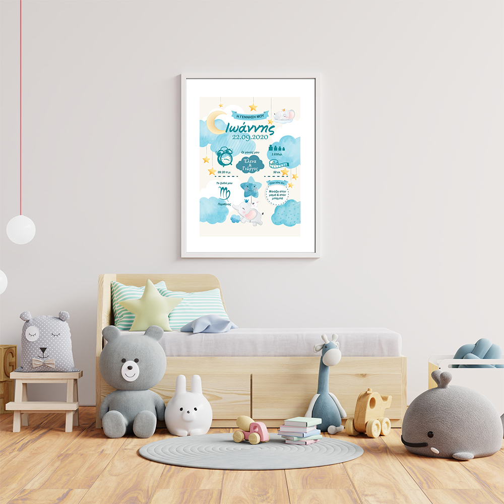 Παιδικό Κάδρο “Η γέννησή μου” με θέμα το κοιμισμένο ελεφαντάκι.